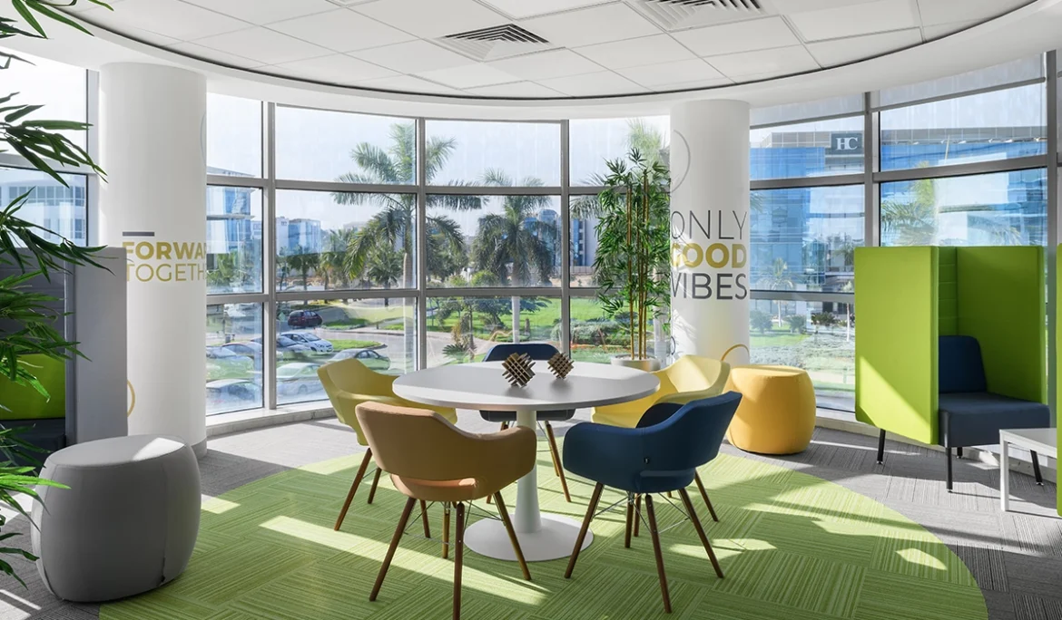 A future-ready, 3,500 m² head office for CGC designed by MYA in Smart Village, integrating agile workspace strategies with modern aesthetics and a Tier 3 Data Center.